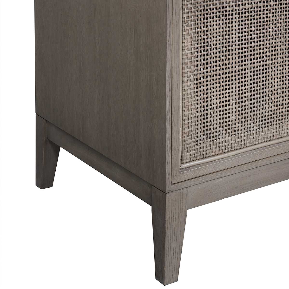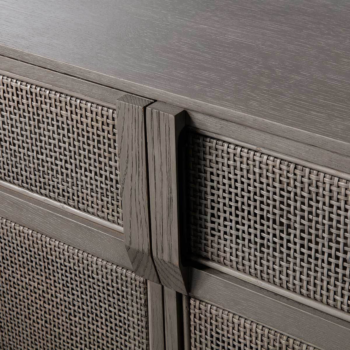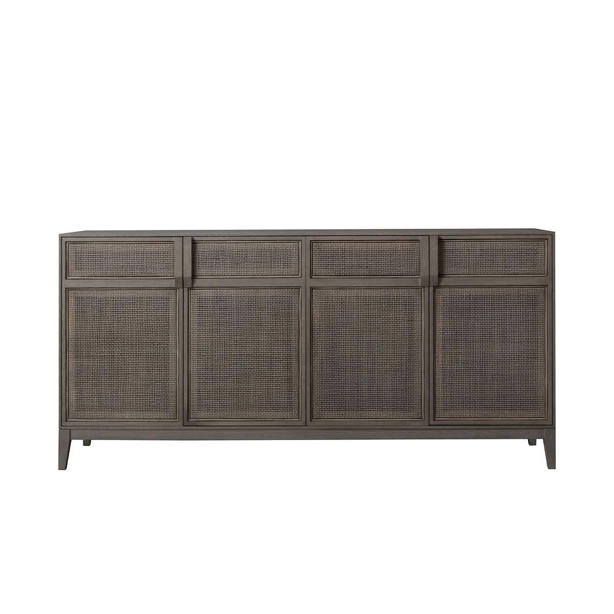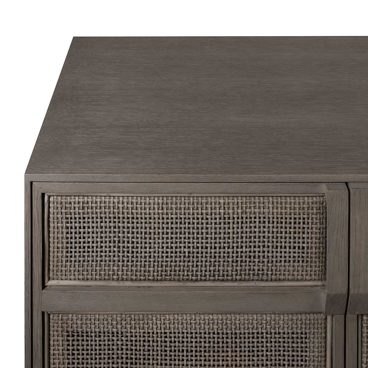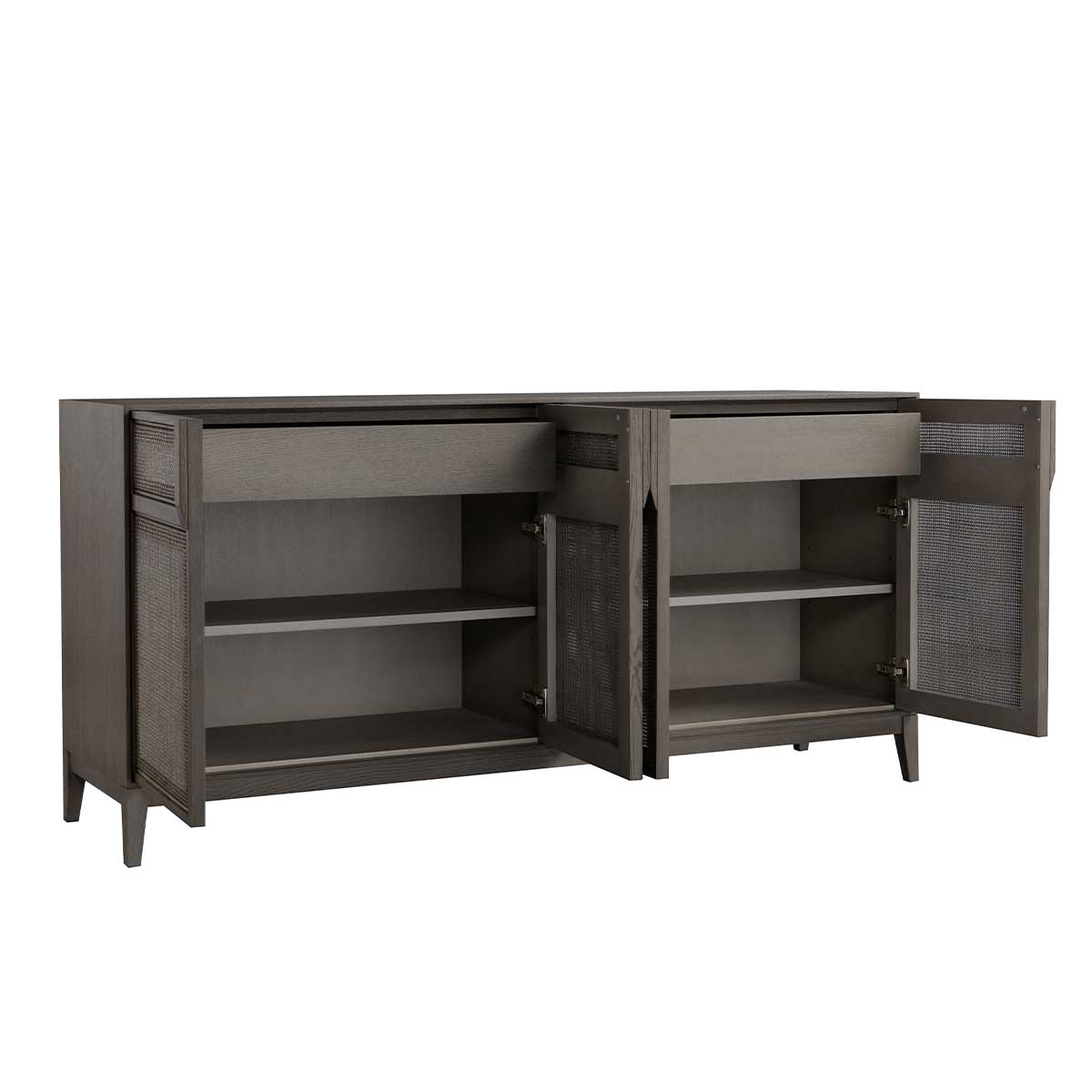 Smoked oak sideboard with soft-close rattan doors, two drawers and adjustable shelving. (Due to the weight of this product, delivery would be to ground floor only.)