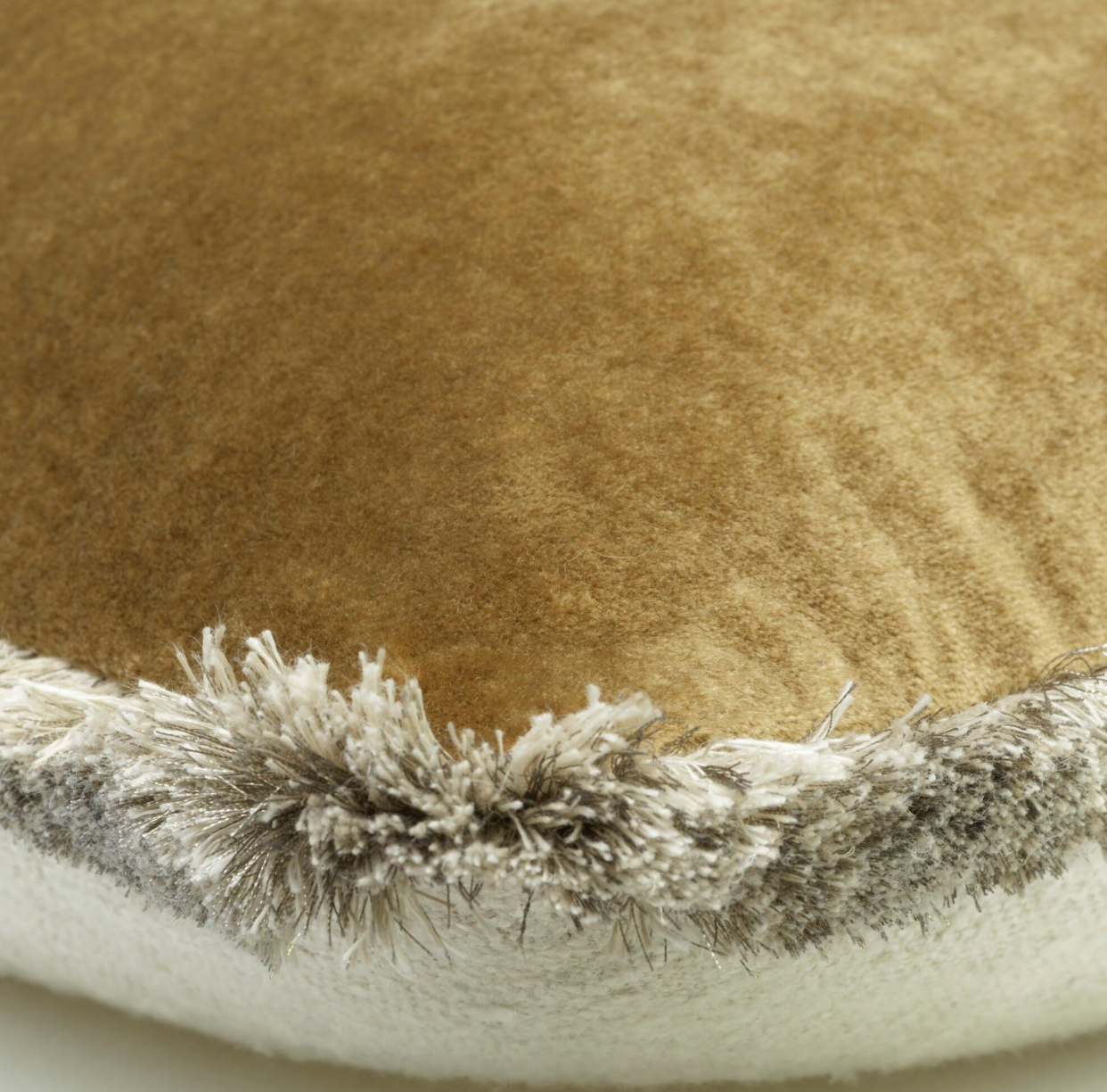 A glamorous two-tone cushion, fronted with Venetia Bronze, a beautiful vintage Mohair made in Italy, epitomising the charm and elegance of Venice, made from quality wool mohair, cotton and linen to create a super soft finish.