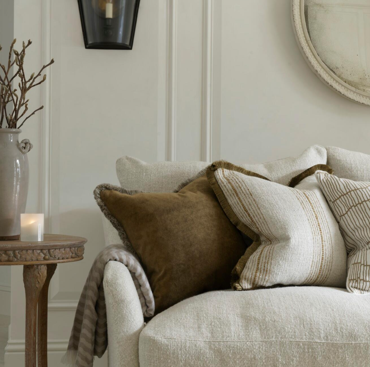 This cushion is stuffed with our signature plush feather inners, sustainably sourced from Scandinavia, with 50% recycled feather from recycled duvets and jackets.