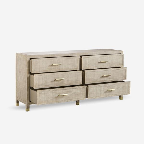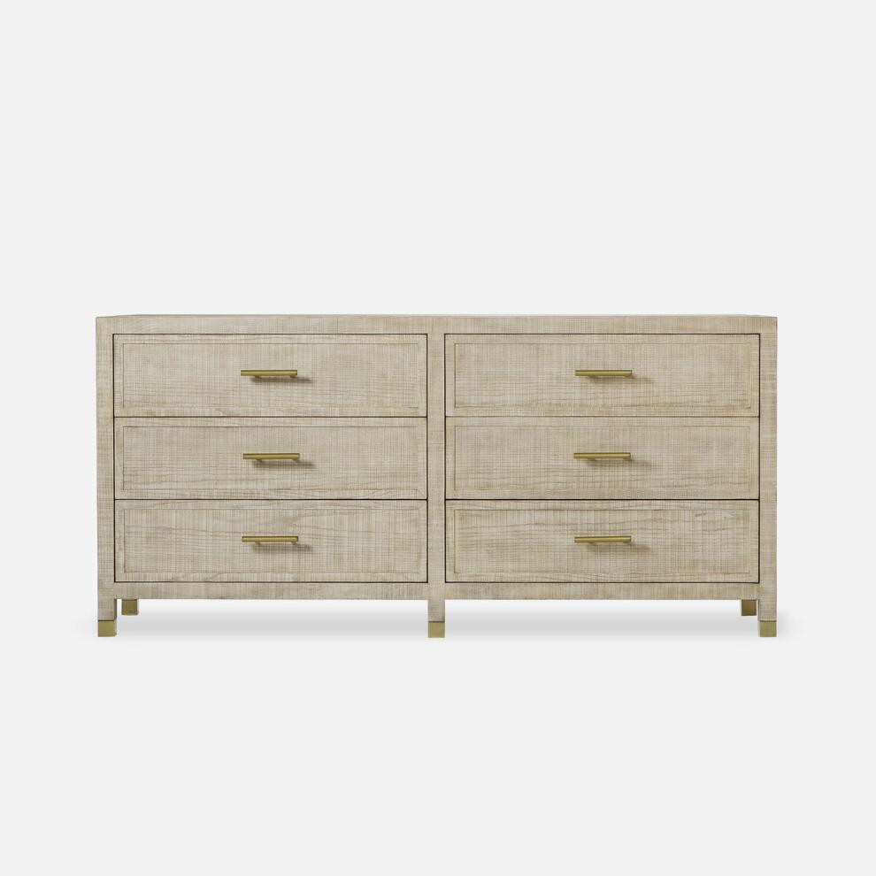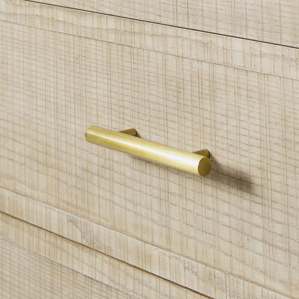 Ash wood chest of drawers with brass details.