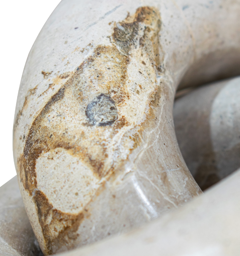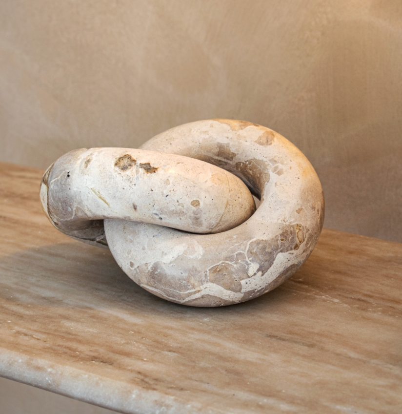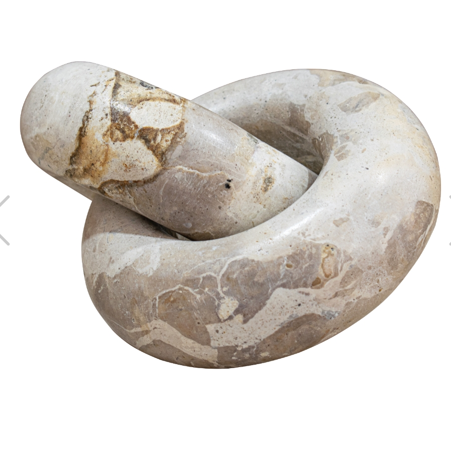 The Tomas Beige Link is a unique sculptural piece crafted from natural marble, featuring an elegant interlocking knot design. This decorative accent highlights the organic beauty of marble through soft neutral tones, subtle veining, and natural surface variations. Its smooth, rounded form creates a contemporary yet timeless statement, ideal for styling on shelving, consoles, or coffee tables. Please Note: This product is made from natural materials, so slight variations between the image and the actual item should be expected.