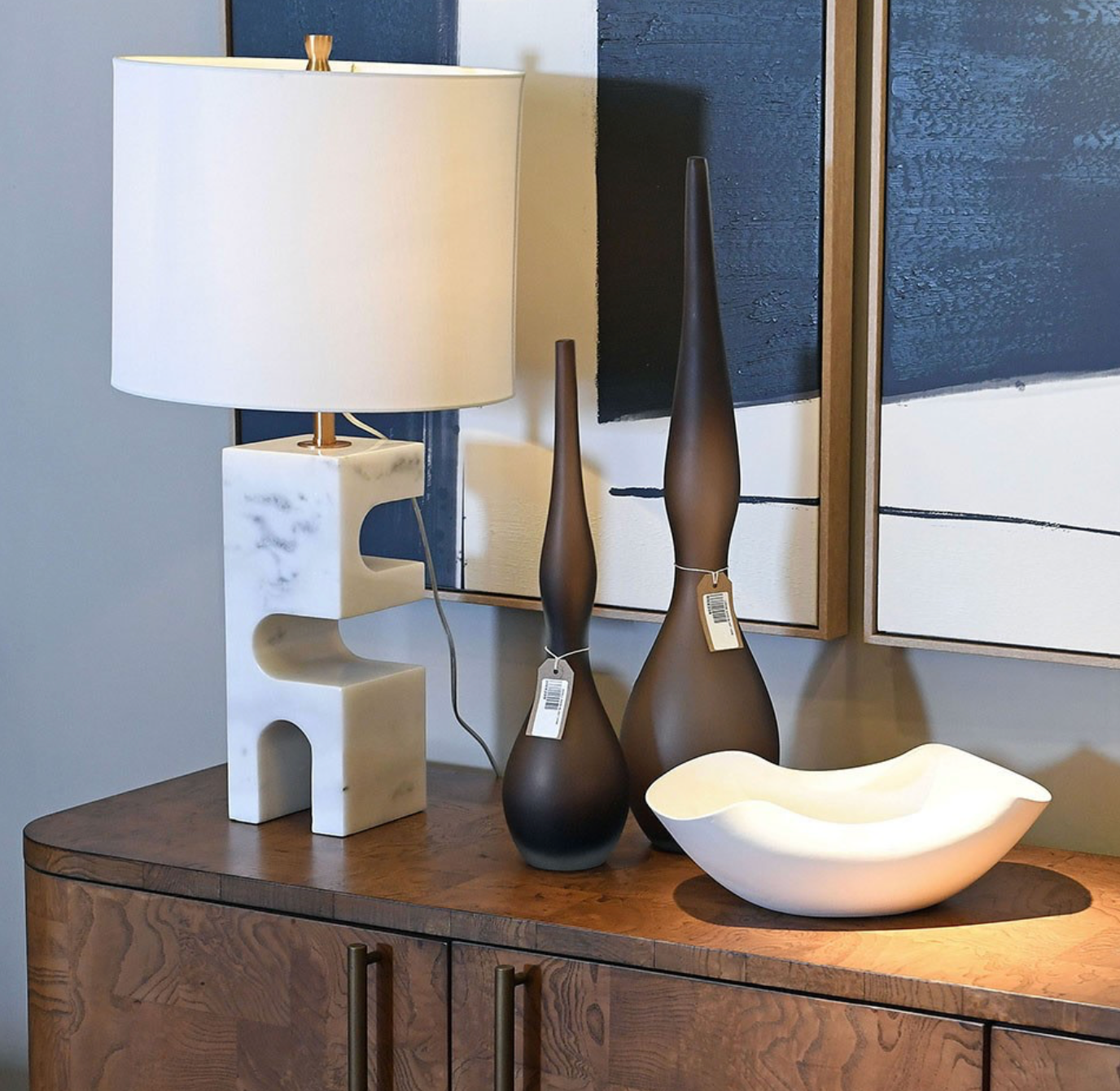 Sand Blast Vase - Small brings understated elegance to any interior. Standing 465mm tall with a 110mm diameter, this sculptural piece features a distinctive frosted finish that catches light beautifully. Its compact proportions make it ideal for shelving, side tables, or as part of a curated display. A refined accent for contemporary and minimalist spaces.
