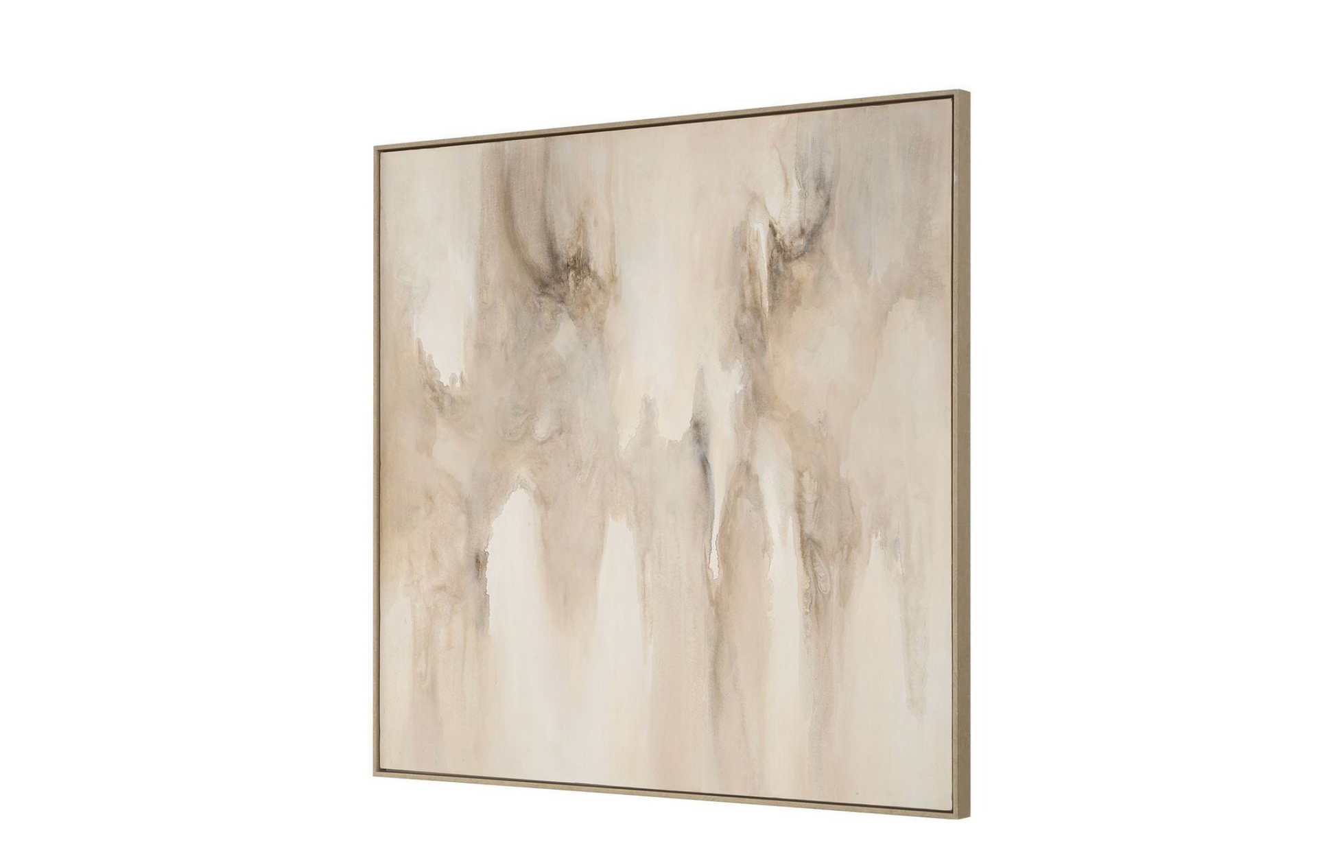 Embark's soft washes of warm beige and taupe blend seamlessly with hints of darker shades, creating a fluid and organic composition that evokes a sense of calm and natural beauty. The artwork is encases in a gray washed wooden frame. Due to the handcrafted nature of this artwork, each piece may have subtle differences.